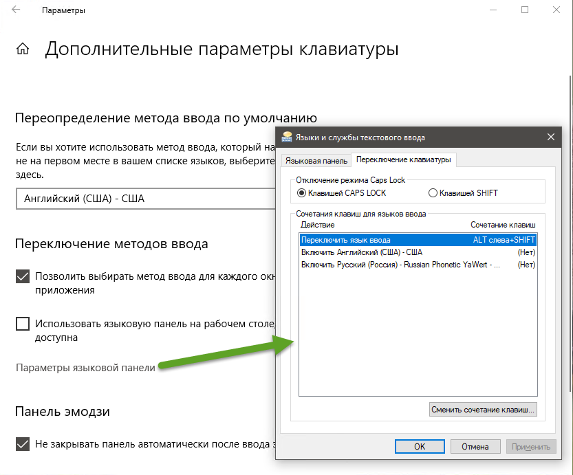 Сейчас Windows также предлагает вариант сменить комбинацию смены раскладок на одну кнопку. Но теперь это не кнопка Win, а та клавиша, на которой расположена тильда, буква «Ё» и обратная скобка.
