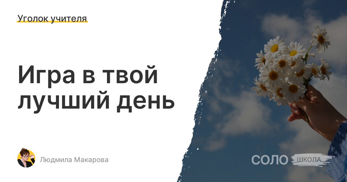 Играем день-деньской. Играем в свой день. Сочиняем свой лучший день. Предлагаем новое слово в тайм-менеджменте. Если создать счастливый образ дня, то с высокой вероятностью он сбудется. Представьте, что у вас задание написать историю вашего лучшего дня.